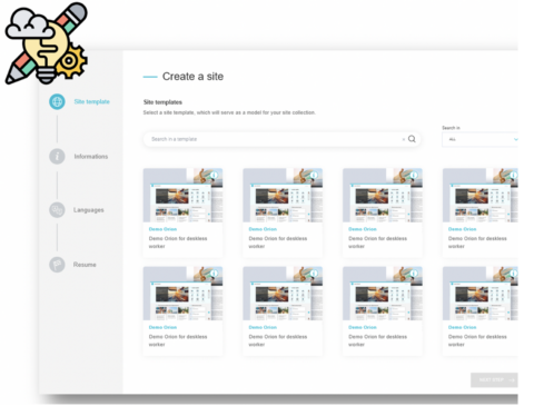 Our new wizard will enable deploying site collections directly from the header (in front). You can access it from a button behind the wheel. You can already start using it and benefit from brand-new forms for creating sites based on a site template.