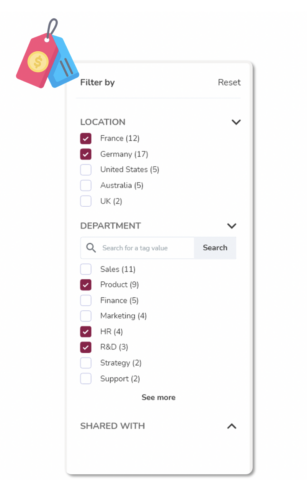 The refiners and tag values are now better presented on the user dashboard on Powell Governance. Filters and teams displayed are now exclusive, and there is a new possibility to search for a tag value when the list of values is extensive.