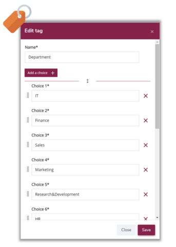 Now, when you edit a “choice tag,” you can choose the order in which the tag values are displayed. This new functionality affects the order in which tag values are displayed on the user dashboard refiner and during team creation.