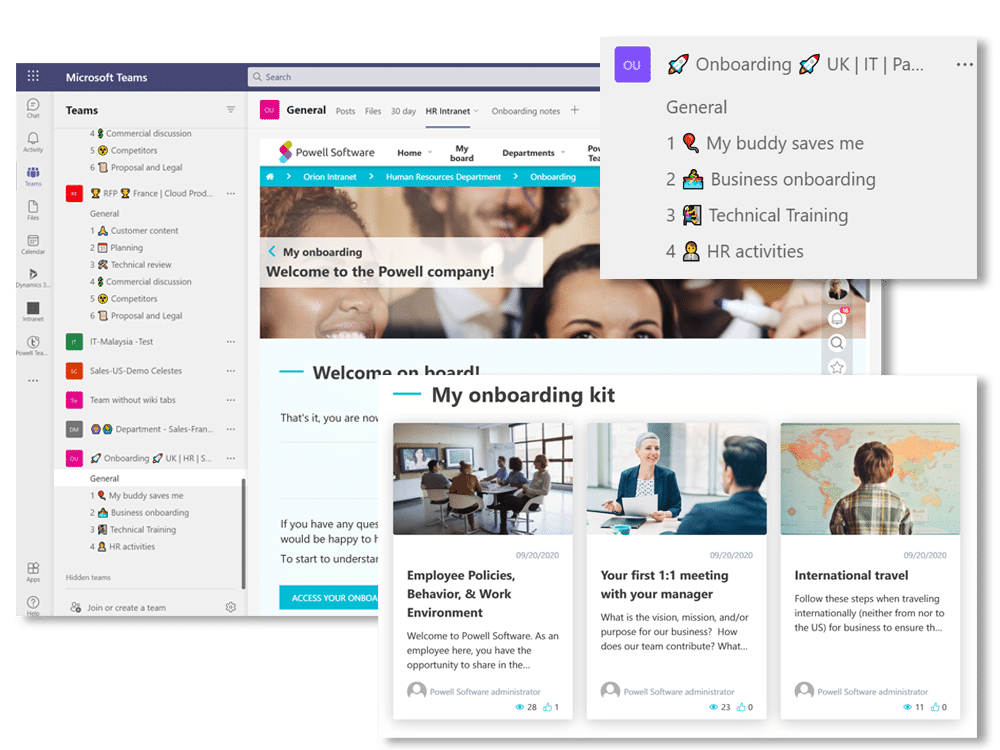 The typical onboarding process starts in the office, where employees are given their desks and introduced to their team. Remote employees, however, face unique challenges, their first day on the job doesn’t start by walking into an office but by opening up a computer. Powell Software’s new employee onboarding templates are designed to allow HR managers to create a complete and smooth onboarding process. By leveraging the power of the intranet and Microsoft Teams HR can get a new hire up and running in minutes.