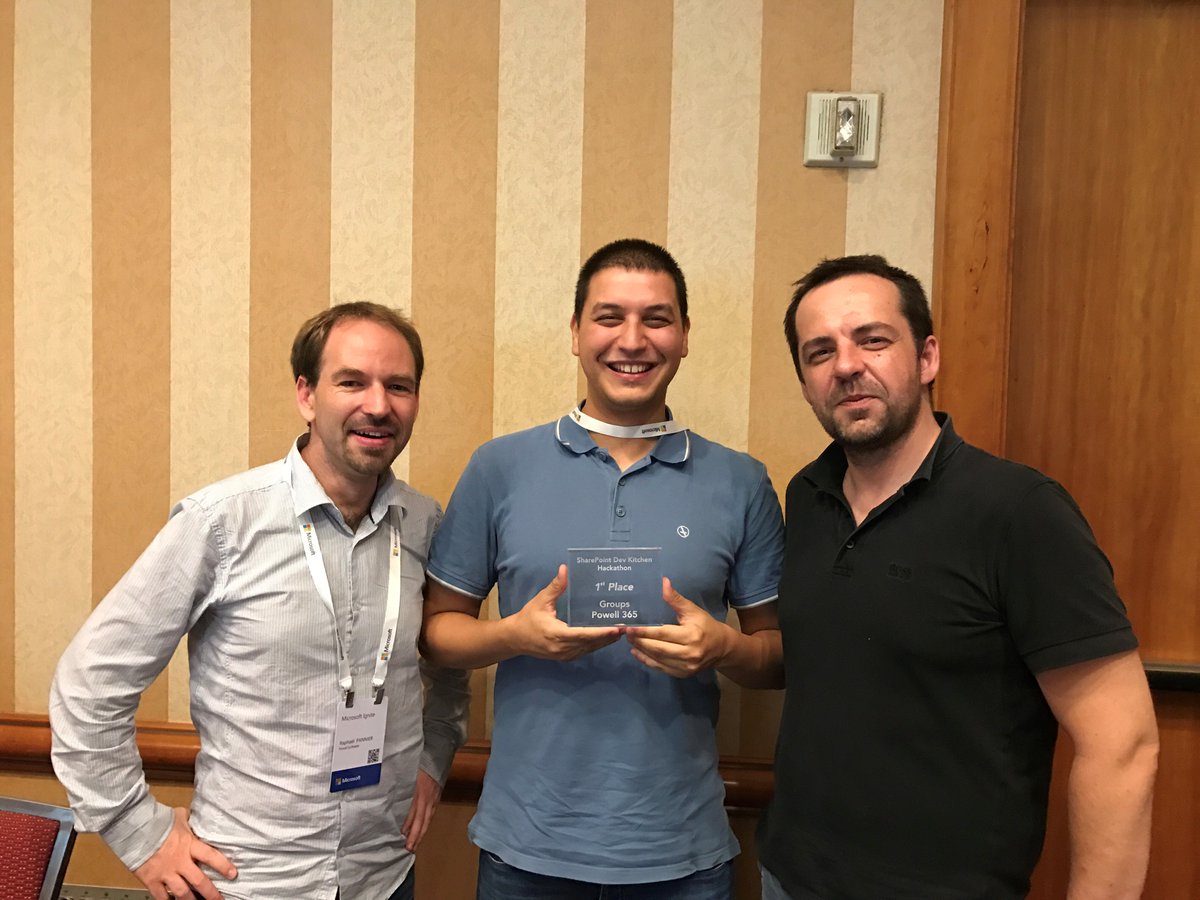 Il y a quelques mois, Powell Software a été invitée à participer au SharePoint Dev Kitchen à Seattle, Washington. C’est lors de cet évènement que le hackathon SPFx a été lancé. Les résultats ont été donnés lors de la cérémonie qui a eu lieu à l’Ignite à Atlanta. Le travail acharné des équipes Powell 365 a payé. Leur modèle Groups, destiné à améliorer la productivité des employés dans leurs tâches quotidiennes a remporté la première place du podium. Quelle fierté !