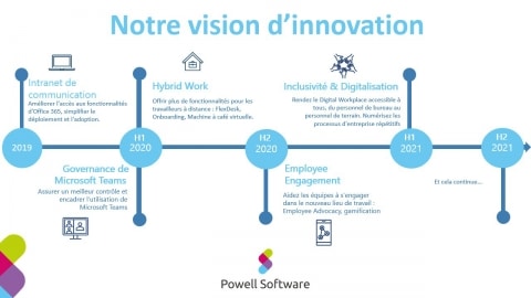 En 2019, nos clients nous faisaient confiance pour notre capacité à déployer un Intranet Corporate dédié à la communication d’entreprise et qui améliorait l’accès aux fonctionnalités de productivité d’Office 365. Avec pour objectifs de faciliter l’adoption pour les collaborateurs et les contributeurs de ces outils et de simplifier le déploiement par les équipes IT. Powell Intranet a continué à évoluer avec de plus en plus de capacités ajoutées au fil du temps. Notre solution intranet exploite désormais au maximum votre investissement Microsoft 365.