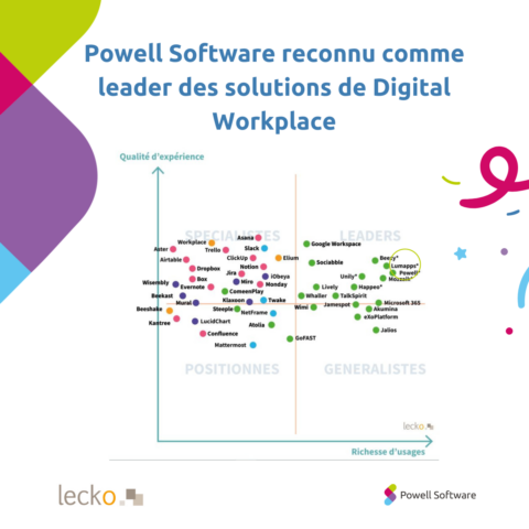 Powell Software a été nommé dans cette analyse grâce à une approche complète de la Digital Workplace, plus particulièrement, grâce à sa suite de produits pour l’environnement numérique de travail complétant Microsoft 365. Avec notre application sur l’infrastructure Microsoft client nous avons fait le choix d’avoir un environnement configurable et généraliste, ce qui nous permet de nous démarquer de certains concurrents proposant une infrastructure tierce.