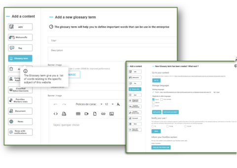 An HR manager defines Kudos (Kudo topics) that can be sent to users. Employees will then click the Kudo and send it to their peers.