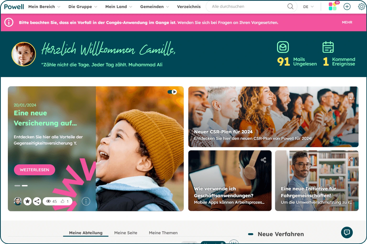 Powell bündelt SharePoint, Teams und weitere Microsoft-Tools in einem zentralen Intranet – einfach, übersichtlich und für den modernen Arbeitsplatz entwickelt.