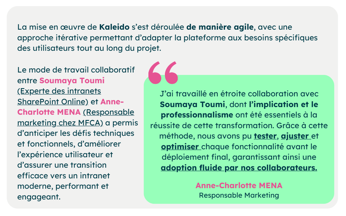Avec Kaleido, la MFCA a transformé une plateforme vieillissante en un espace fluide, interactif et central, au service de la communication interne et de la culture d’entreprise.