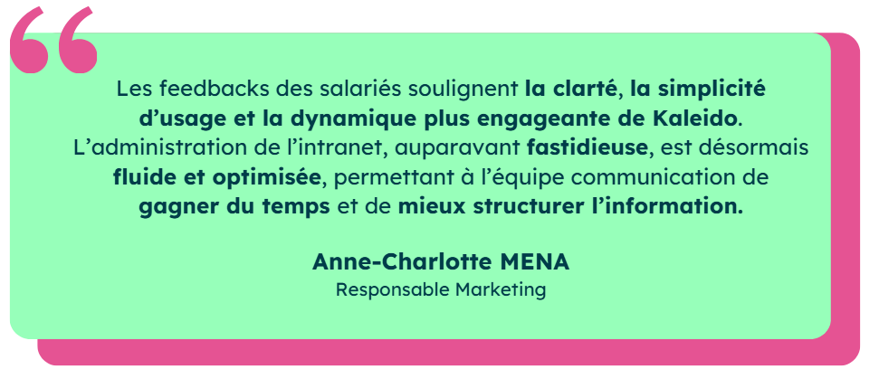 Grâce à Kaleido, l’ntranet est devenu un levier stratégique qui favorise l’interaction, renforce la culture d’entreprise et simplifie le quotidien de nos équipes.