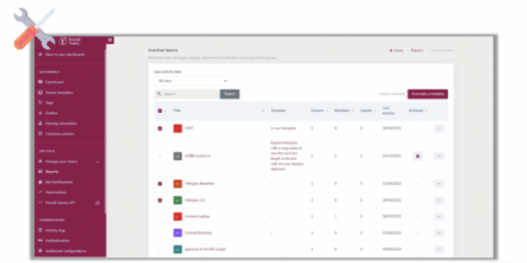 Now it will also be possible to associate a template to several teams at once from the reports’ pages. As a result, it becomes easier to filter teams according to different governance issues highlighted on Powell Governance reports, and then fix those issues with ease.