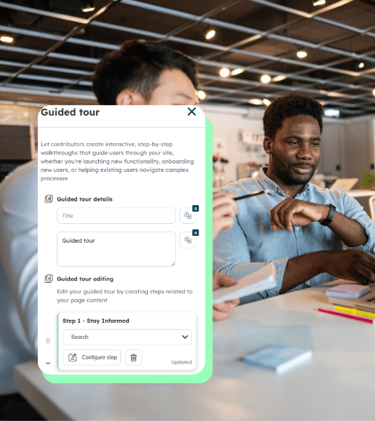 With Guided Tour, automate interactive and engaging discovery experiences. Step-by-step sequences help employees quickly familiarize themselves with available tools and resources for optimal learning.