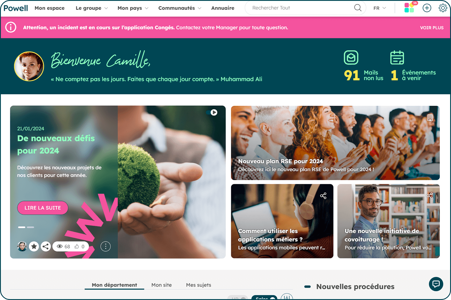 Les organisations qui utilisent Powell voient leur intranet passer d’un outil subi à un espace vivant, simple à utiliser et réellement adopté par leurs collaborateurs.