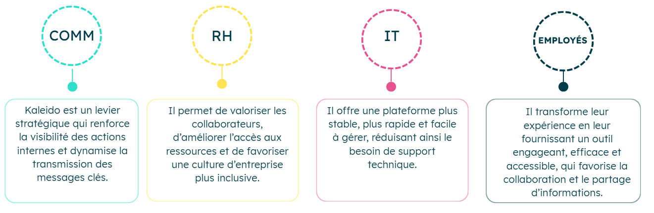 Pour Anne-Charlotte, Kaleido symbolise bien plus qu’une refonte technique : « Avec Kaleido, nous avons transformé notre intranet en une plateforme moderne, intuitive et engageante, favorisant la communication, l’interaction et l’accessibilité pour tous nos collaborateurs au quotidien. »